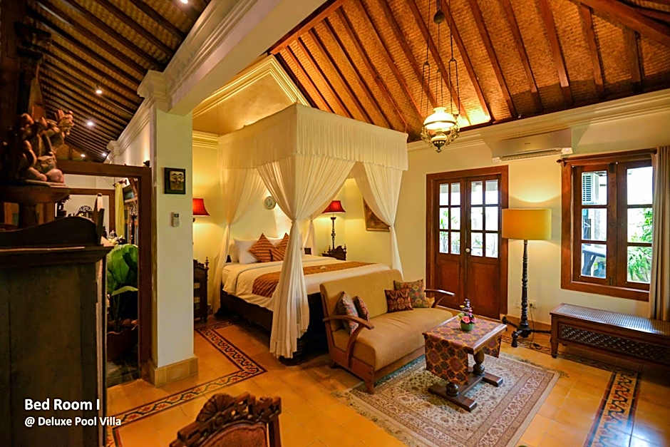 Spacious villa features 2 bedrooms, a private swimming pool and well-equipped kitchen. Surrounded by tropical gardens, it also comes with an open plan dining area and a living area with beautiful Javanese-style interiors.
